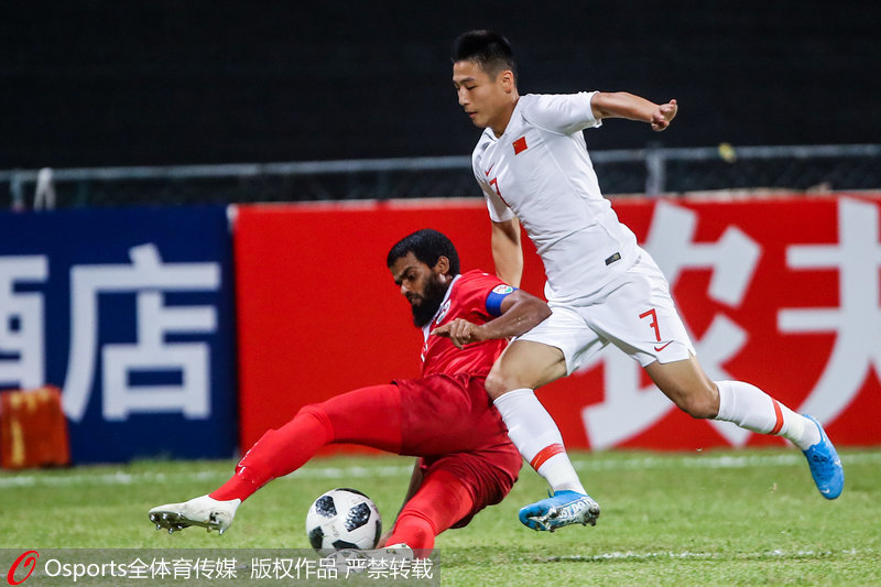中国队首发(433):1-颜骏凌;17-王刚、5-张琳芃、22-朱辰杰、4-李磊;8-蒿俊闵(78' 16-姚均晟)、15-吴曦、14-池忠国(84' 13-李可);7-武磊、9-杨旭(78' 19-韦世豪)、11-艾克森