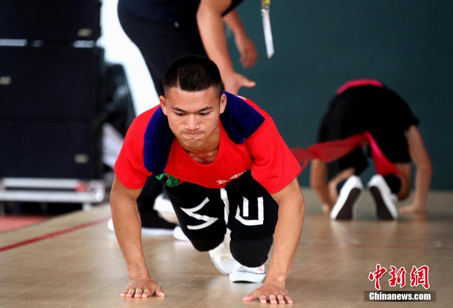 9月10日,河南郑州,选手在押加比赛中。当日,第十一届全国少数民族传统体育运动会押加比赛继续在郑州大学举行。押加又称“大象拔河”“藏式拔河”,是藏族人民喜爱的一项民族传统体育运动,已有百年历史。押加比赛所用场地为长方形,宽2米,长9米。比赛时,由两名运动员在比赛场地上,将一条长绸布带做成的圆环分别套于颈部(带子从两腿间通过),四肢着地并背向对方,向自己的前进方向用力,以一方将置于两者之间的坠条拉过自己一侧的决胜线为胜利。 中新社记者 王中举 摄