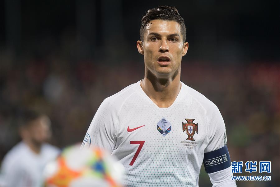 9月10日,葡萄牙队球员克里斯蒂亚诺·罗纳尔多在比赛中。 当日,在2020年欧洲足球锦标赛预选赛B组比赛中,葡萄牙队客场以5比1战胜立陶宛队。 新华社发(阿尔弗雷达斯·普里亚迪斯摄)