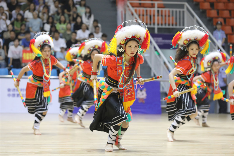 人民网郑州9月11日电(杨乔栋)9月10日,第十一届全国少数民族传统体育运动会表演项目进入第二个比赛日。在当日比赛中,3个组别、59个极具民族特色的节目逐一亮相,亮点频现,异彩纷呈,给人留下深刻的印象。选手们将民族服饰、生活习俗与艺术表演完美结合,充分地展示了少数民族特色独有的风情和文化魅力。
