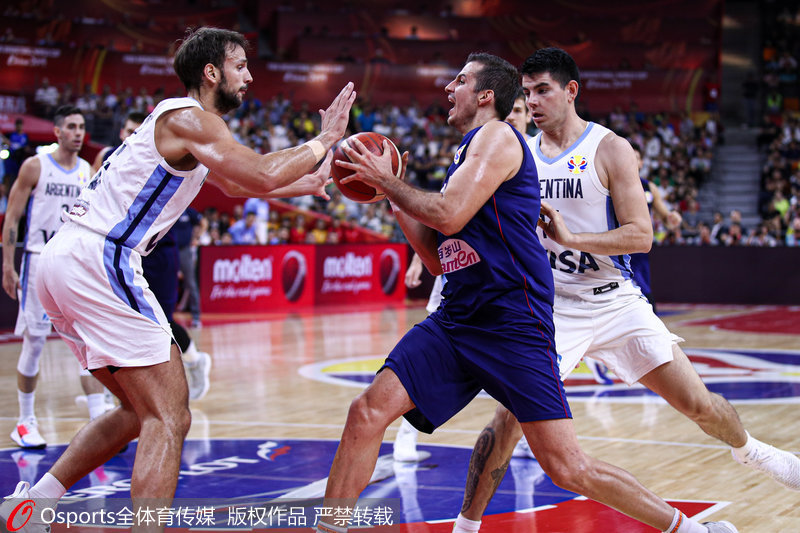 人民网北京9月11日电(袁无缺)9月10日,2019男篮世界杯8强赛展开较量。夺冠热门塞尔维亚队87:97不敌阿根廷队,被挡在4强大门之外,继续参加5-8名排位赛,而阿根廷队将在9月13日对阵美国队与法国队的胜者。