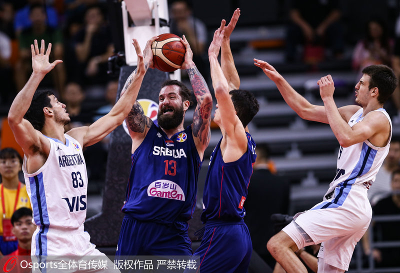 人民网北京9月11日电(袁无缺)9月10日,2019男篮世界杯8强赛展开较量。夺冠热门塞尔维亚队87:97不敌阿根廷队,被挡在4强大门之外,继续参加5-8名排位赛,而阿根廷队将在9月13日对阵美国队与法国队的胜者。