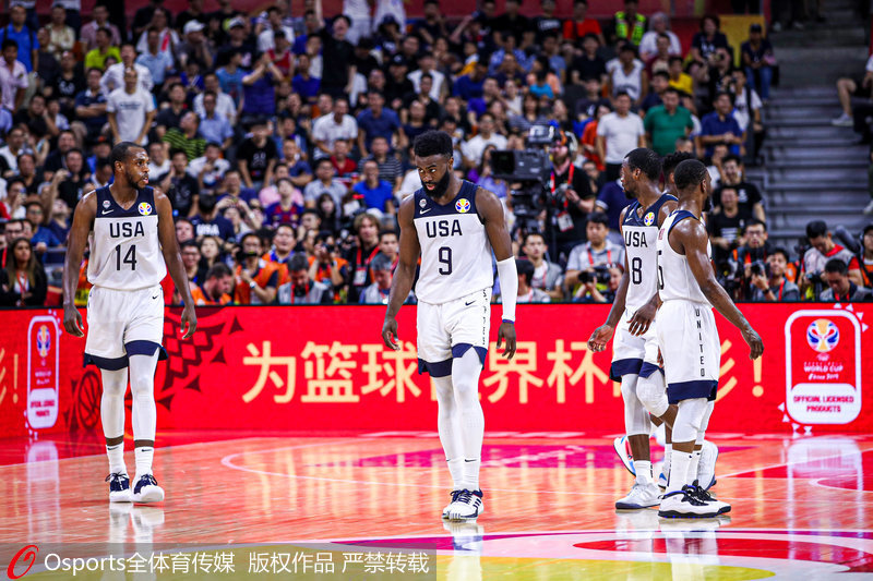 人民网北京9月12日电(郝帅)昨晚,2019年男篮世界杯四分之一决赛继续进行,夺冠热门美国队与法国队交锋。最终,经过四节鏖战,美国队以79-89不敌法国队,无缘晋级本届世界杯四强。美国队米切尔23投12中,得到29分6篮板4助攻,但难挽美国队败局。四节比分为:18-18、21-27、27-18、13-26(美国队在前)。