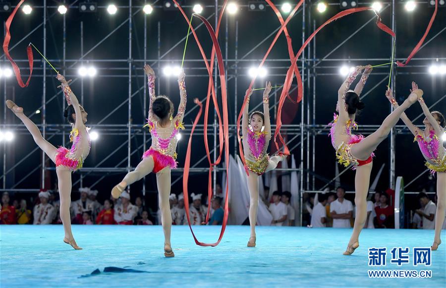 9月11日,小朋友在活动上进行艺术体操表演。 当日,西安举行全民健身展演活动庆祝全运会60周年。整台展演展示了全运会60年发展历程、新中国体育发展和全民健身发展成就。 新华社记者刘潇摄