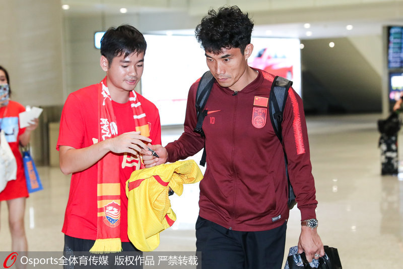 人民网北京9月12日电 世预赛40强赛中国男足首战告捷后,队员已返回国内。首秀归来的艾克森心情大好,双手点赞为球迷签名。