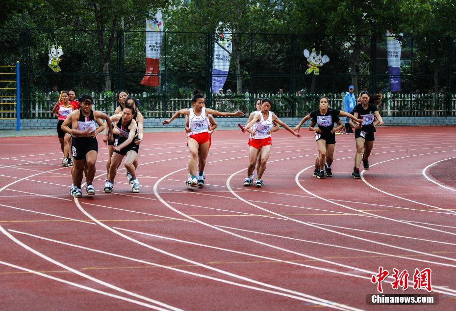 9月11日,第十一届全国少数民族传统体育运动会板鞋竞速项目在河南郑州开赛,选手步调一致风驰电掣。板鞋竞速是由多名运动员一起将足套在同一双板鞋上,在田径场上进行的比赛,以在同等的距离内所用的时间多少决定名次。 中新社记者 王中举 摄