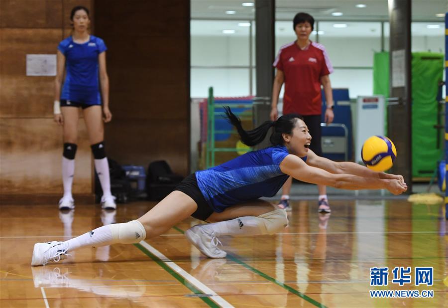 9月12日,中国队球员刘晏含在训练中救球。 当日,中国女排在日本横滨进行训练,备战将于9月14日开始的2019年女排世界杯赛。 新华社记者贺灿铃摄