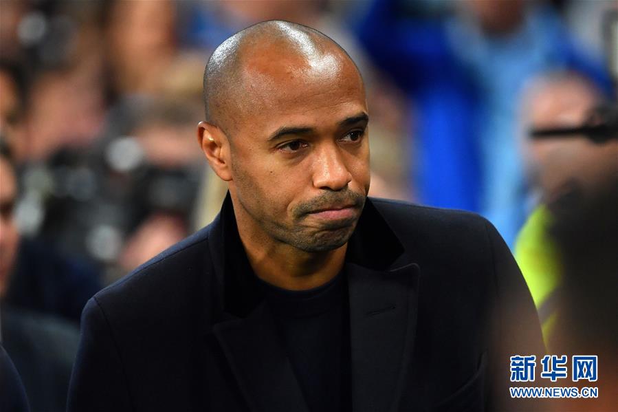 9月11日,英超全明星队助理教练亨利在比赛前。 当日,在曼城队为前队长孔帕尼举行的告别赛中,曼城传奇队以2比2战平英超全明星队。 新华社/法新