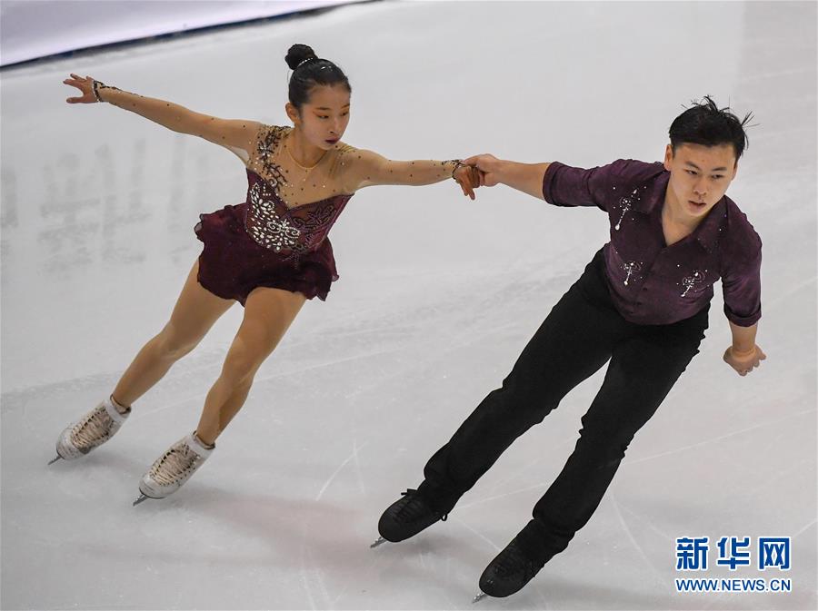 9月12日,齐齐哈尔市冬季运动项目中心/黑龙江省冰上训练中心组合王慧蒂/贾梓麒(右)在双人滑青年组自由滑比赛中,最终他们以总分155.89分的成绩获得双人滑青年组第二名。 当日,在长春举行的2019/2020全国花样滑冰锦标赛暨十四冬花样滑冰资格赛进入第二个比赛日。 新华社记者张楠摄