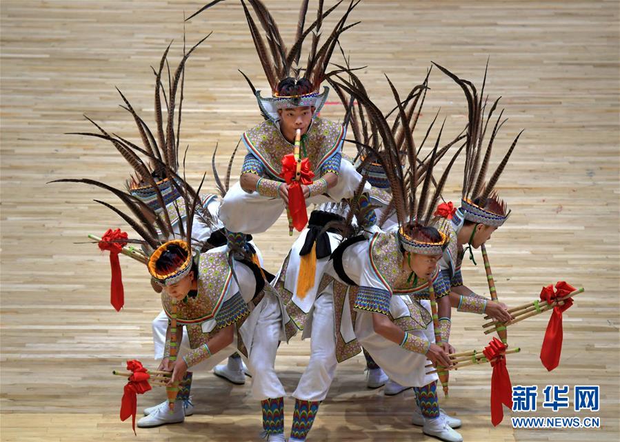 9月14日,贵州代表队选手在表演《飞笙踏月》。 当日,第十一届全国少数民族传统体育运动会表演项目在河南郑州继续进行。 新华社记者李安摄