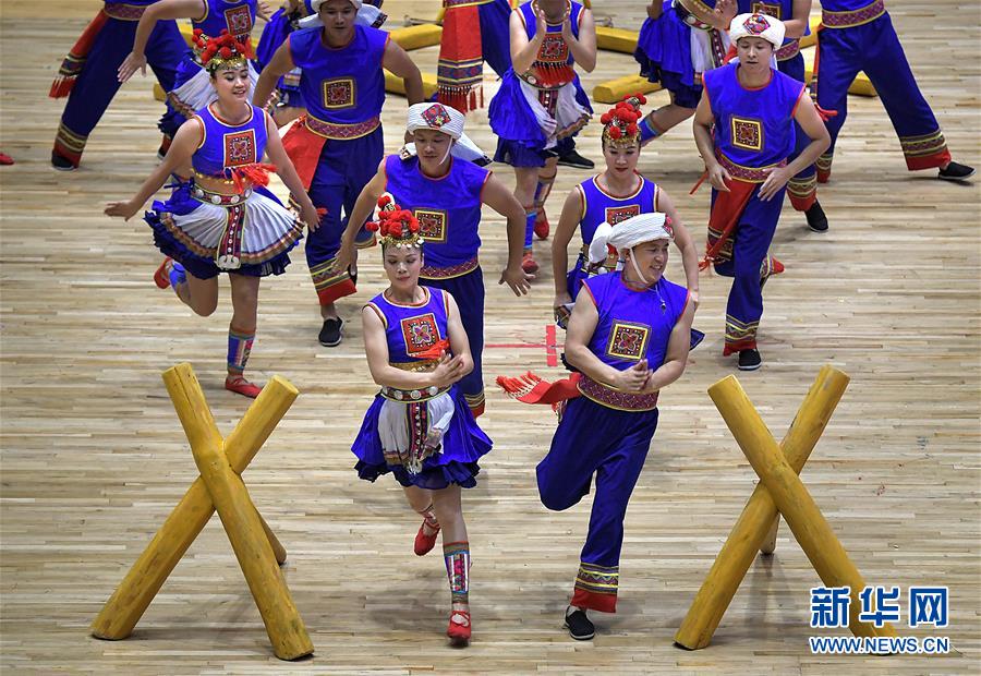 9月14日,广东代表队选手在表演节目《鼎孖》。 当日,第十一届全国少数民族传统体育运动会表演项目在河南郑州继续进行。 新华社记者李安摄