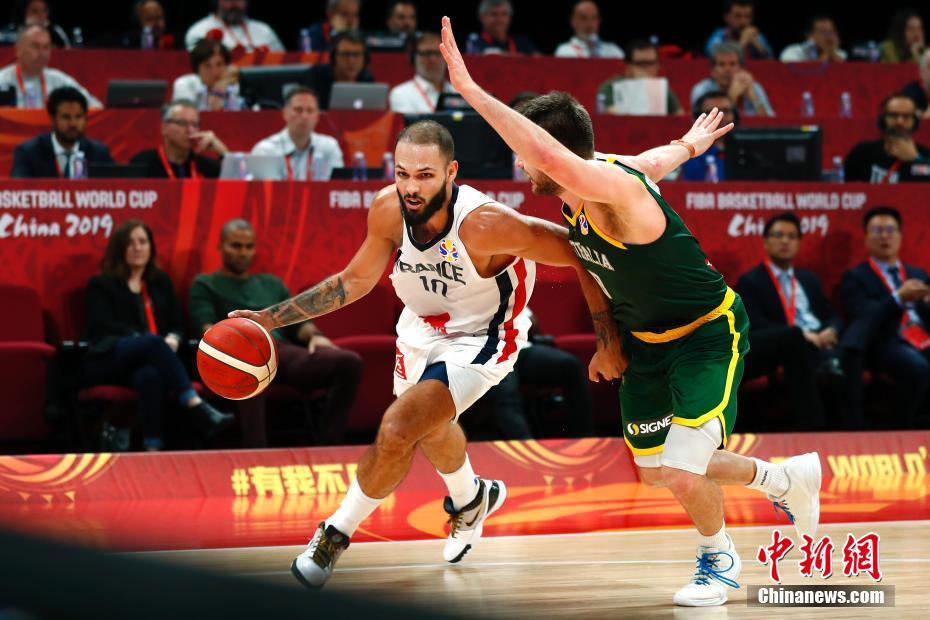 9月15日,法国球员富尼耶(左)在比赛中突破。当日,在北京进行的2019年国际篮联篮球世界杯季军争夺战中,法国队67:59战胜澳大利亚队,摘得铜牌。中新社记者 富田 摄