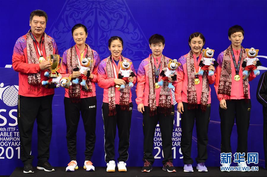 9月17日,中国队在颁奖仪式上。 当日,在印度尼西亚日惹举行的2019亚洲乒乓球锦标赛女子团体决赛中,中国队以3比0战胜日本队,夺得冠军。 新华社记者杜宇摄