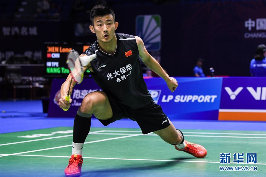 9月19日,谌龙在比赛中回球。 当日,在江苏常州举行的2019中国羽毛球公开赛男单第二轮比赛中,中国选手谌龙以2比0战胜中国台北选手王子维,晋级八强。 新华社记者李博摄
