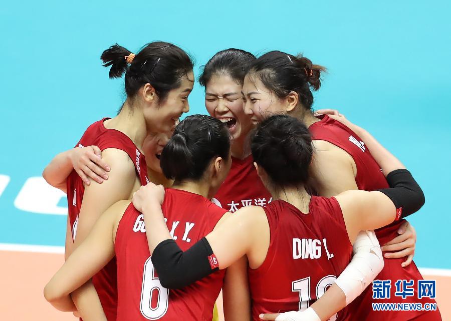 9月22日,中国队球员赛后庆祝胜利。 新华社记者杜潇逸摄