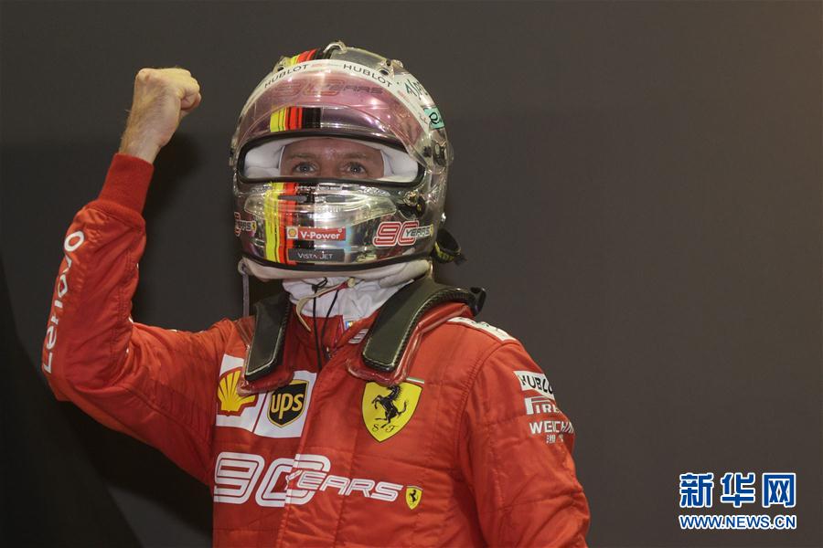 9月22日,维泰尔在比赛后庆祝胜利。 当日,在2019年F1新加坡大奖赛正赛中,法拉利车队德国车手维泰尔夺冠。 新华社发 (邓智炜摄)