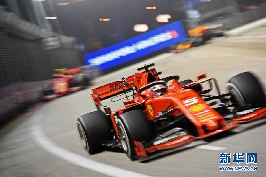 9月22日,手维泰尔在比赛中。 当日,在2019年F1新加坡大奖赛正赛中,法拉利车队德国车手维泰尔夺冠。 新华社发 (邓智炜摄)