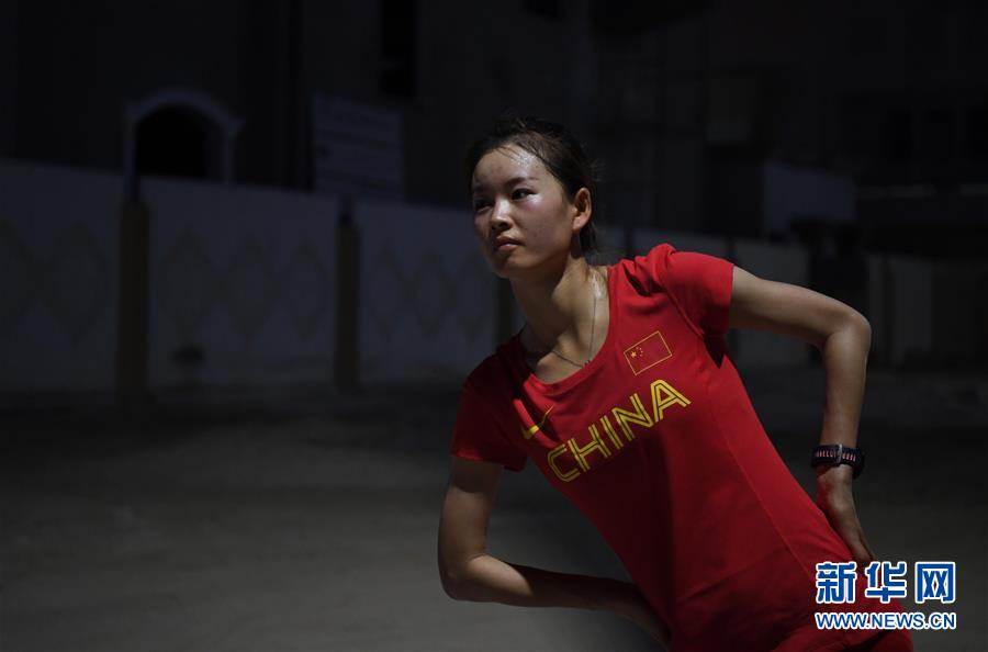 9月23日,梁瑞在训练中。 当日,中国竞走运动员杨家玉与梁瑞在卡塔尔多哈进行训练。杨家玉、梁瑞将分别参加2019国际田联世界田径锦标赛女子20公里竞走、女子50公里竞走的比赛。 新华社记者贾宇辰摄