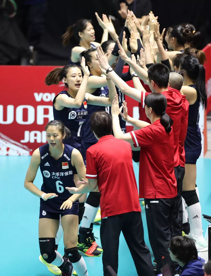 9月24日,中国队球员在比赛前击掌互相鼓励。新华社记者 杜潇逸 摄