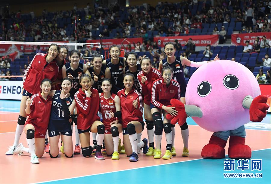9月24日,中国队球员在比赛后合影。 当日,在日本札幌举行的2019年女排世界杯赛第二阶段A组循环赛中,中国队以3比0战胜肯尼亚队。 新华社记者贺灿铃摄