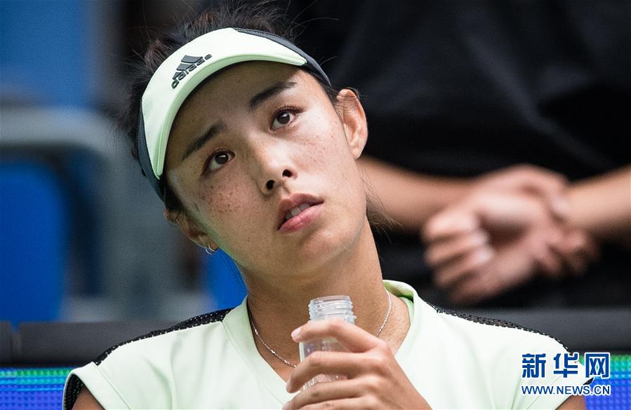 9月25日,中国选手王蔷在比赛中。 当日,2019年WTA武汉公开赛女子单打第三轮比赛中,中国选手王蔷以0比2不敌美国选手艾莉森·里斯克,无缘八强。 新华社记者肖艺九摄