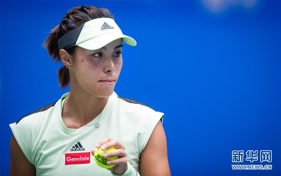 9月25日,中国选手王蔷在比赛中。 当日,2019年WTA武汉公开赛女子单打第三轮比赛中,中国选手王蔷以0比2不敌美国选手艾莉森·里斯克,无缘八强。 新华社记者肖艺九摄