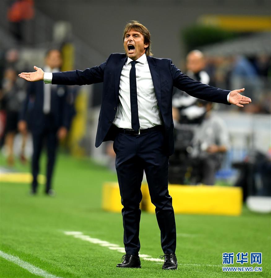9月25日,国际米兰队主教练孔蒂在场边指挥。 当日,在2019-2020赛季意大利足球甲级联赛第五轮比赛中,国际米兰队主场以1比0战胜拉齐奥队。 新华社发(奥古斯托·卡萨索利摄)