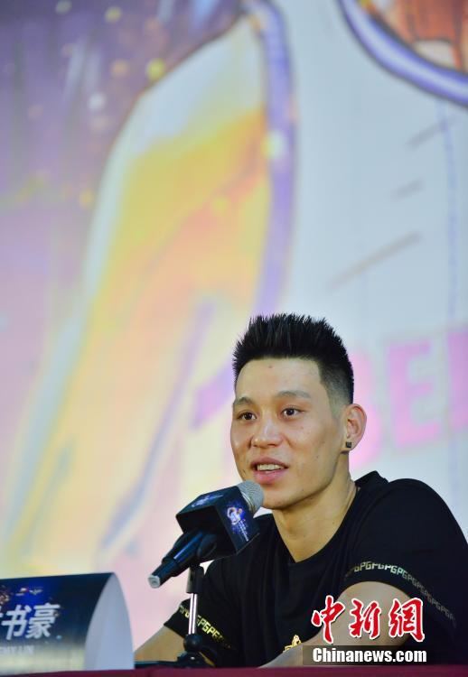 9月26日,林书豪抵达北京,并携首钢男篮7号球衣与媒体见面。林书豪表示,希望自己在CBA的经历能传播拼搏精神和快乐篮球的态度,鼓励青少年追求篮球梦想。中新社记者 张兴龙 摄