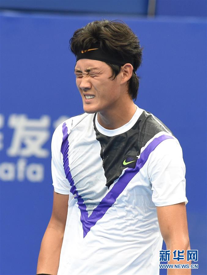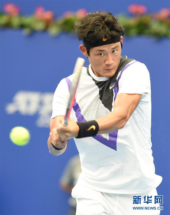 9月26日,张之臻在比赛中回球。 当日,在2019年ATP珠海网球冠军赛男子单打第二轮比赛中,中国选手张之臻以1比2不敌意大利选手塞皮,无缘八强。 新华社记者卢汉欣摄
