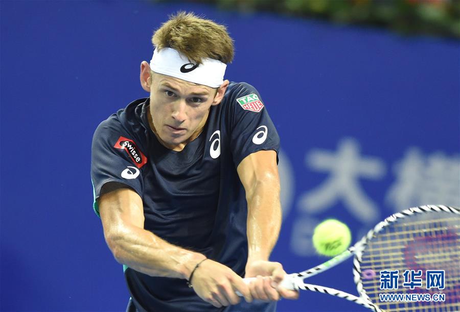9月26日,德米纳尔在比赛中回球。 当日,在2019年ATP珠海网球冠军赛男子单打第二轮比赛中,英国选手穆雷以1比2不敌澳大利亚选手德米纳尔,无缘八强。 新华社记者卢汉欣摄