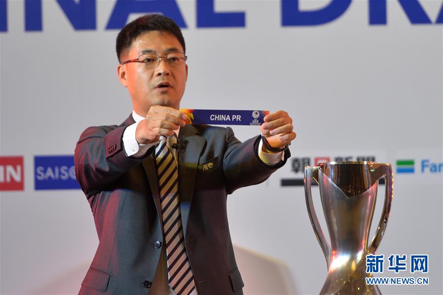 9月26日, 亚足联竞赛部负责人申晚吉在抽签仪式上展示中国队抽签结果。 2020年第四届U23亚洲杯决赛阶段2020年东京奥运会足球赛亚洲区预选赛决赛阶段分组抽签仪式在泰国曼谷举行。中国国奥队作为第三档球队,被抽进C组,同组的包括伊朗、韩国、乌兹别克斯坦。 新华社发(拉亨 摄)