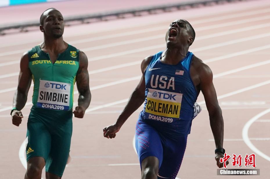 多哈田径世锦赛男子100米决赛 美国选手科尔曼夺金