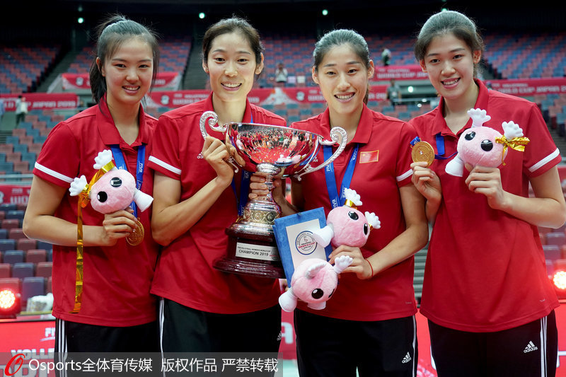 张常宁、朱婷、刘晓彤、李盈莹(从左至右)合影
