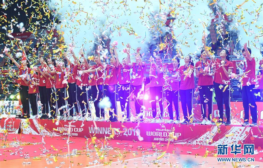 2019女排世界杯颁奖仪式举行 中国队捧起冠军奖杯!