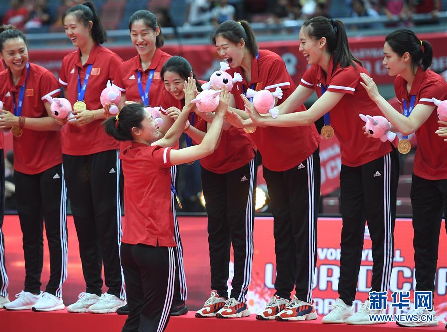 2019女排世界杯颁奖仪式举行 中国队捧起冠军奖杯!