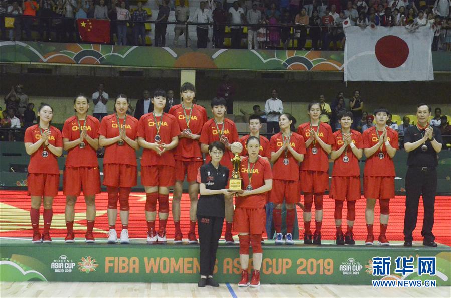 9月29日,中国队在颁奖仪式上。 当日,在印度班加罗尔举行举行的2019女篮亚洲杯决赛中,中国队以68比71不敌日本队,获得亚军。 新华社发(卡希夫·马苏德摄)