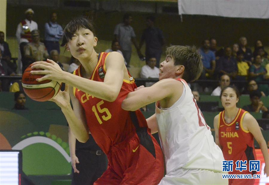 9月29日,中国队球员韩旭(左)在比赛中进攻。 当日,在印度班加罗尔举行举行的2019女篮亚洲杯决赛中,中国队以68比71不敌日本队,获得亚军。 新华社发(卡希夫·马苏德摄)