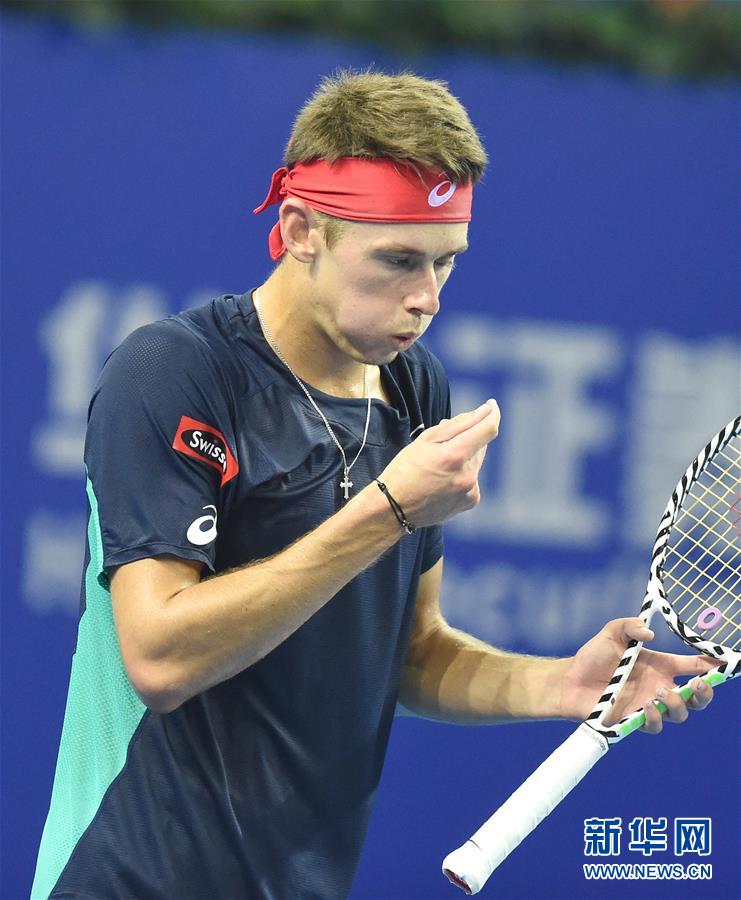 9月29日,德米纳尔在比赛中。 当日,在2019年ATP珠海网球冠军赛男子单打决赛中,澳大利亚选手德米纳尔以2比0战胜法国选手曼纳里诺,获得冠军。 新华社记者卢汉欣摄