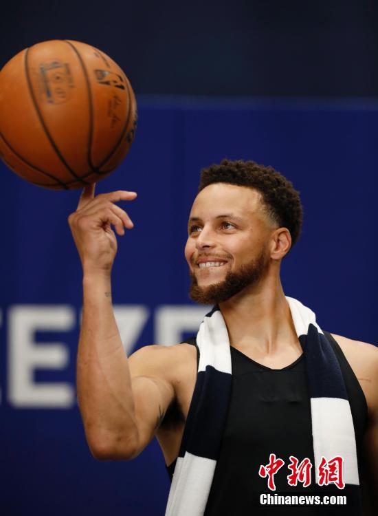 当地时间9月30日,NBA金州勇士队在新主场大通中心举行媒体日活动。NBA新赛季的常规赛将于10月打响,勇士队将在当地时间10月5日迎接第一个对手湖人队。图为球员斯蒂芬·库里现身媒体日活动。中新社记者 刘关关 摄