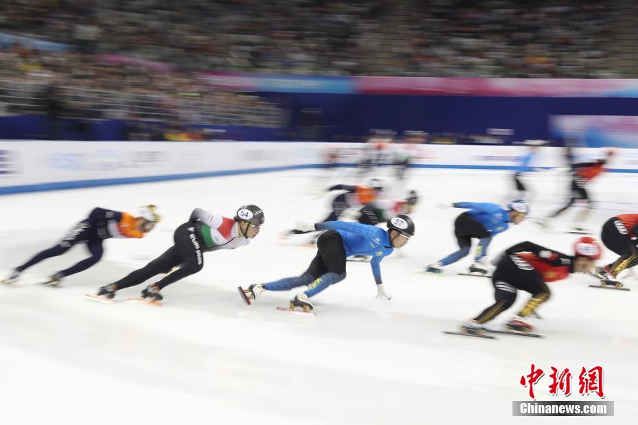 10月5日,国际滑联2019上海超级杯大奖赛进行了2000米混合接力决赛。中国四人出战,最终新秀张添翼在最后一棒超越匈牙利选手,帮助中国队夺得冠军。图为比赛中选手们高速滑行。 中新社记者 张亨伟 摄