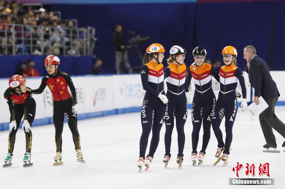 10月5日,国际滑联2019上海超级杯大奖赛进行了短道速滑女子3000米接力决赛。由奥运会冠军舒珊娜·舒尔婷领衔的荷兰队斩获冠军。图为赛后荷兰队队员互相庆祝胜利。中新社记者 张亨伟 摄