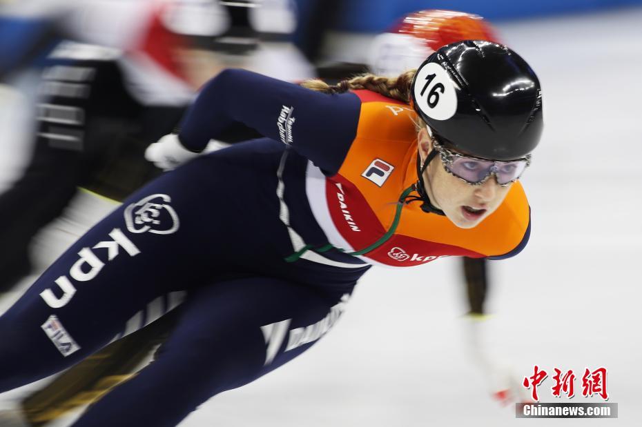 10月5日,国际滑联2019上海超级杯大奖赛进行了短道速滑女子3000米接力决赛。由奥运会冠军舒珊娜·舒尔婷领衔的荷兰队斩获冠军。图为高速滑行中的荷兰选手。 中新社记者 张亨伟 摄