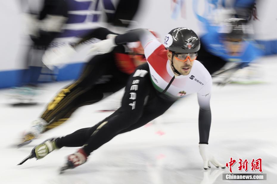 10月5日,国际滑联2019上海超级杯大奖赛进行了男子5000米接力决赛。最终匈牙利队夺得冠军,中国队收获一枚铜牌。图为匈牙利选手高速滑行。中新社记者 张亨伟 摄