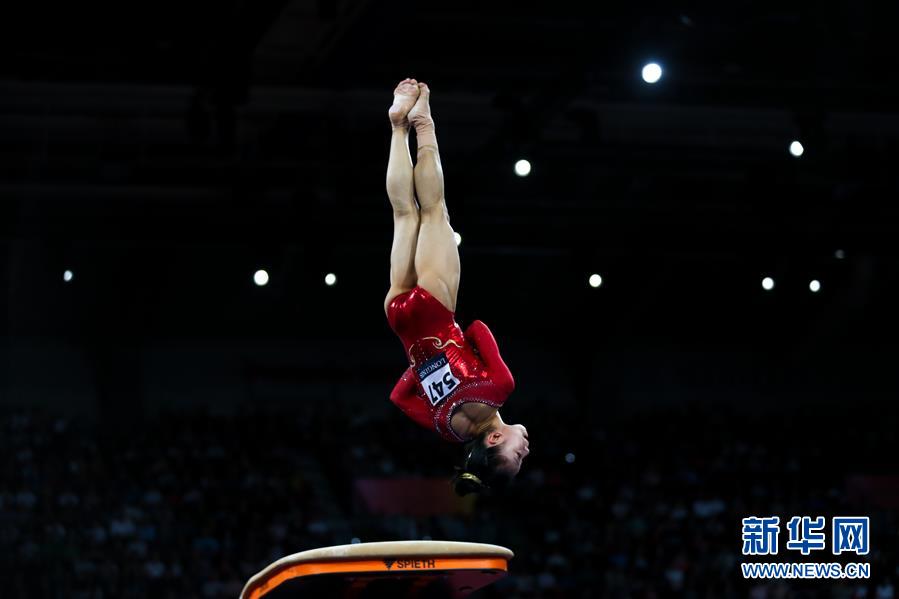 10月8日,中国队选手祁琦在跳马比赛中。 当日,第49届世界体操锦标赛女子团体决赛在德国斯图加特举行。 由刘婷婷、李诗佳、唐茜靖、祁琦、陈一乐和章瑾组成的中国队以164.230分的成绩获得第四名。 新华社记者张铖摄