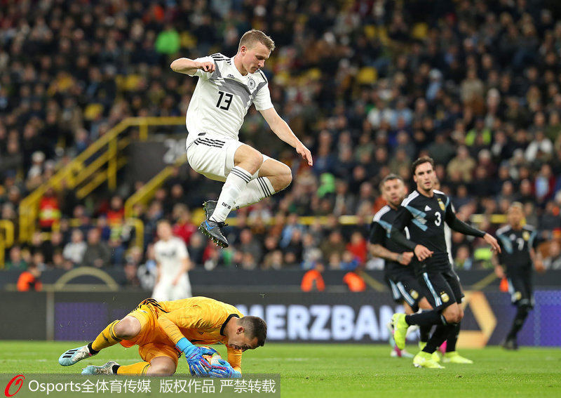 热身赛-梅西缺阵格纳布里破门 德国2-2战平阿根廷