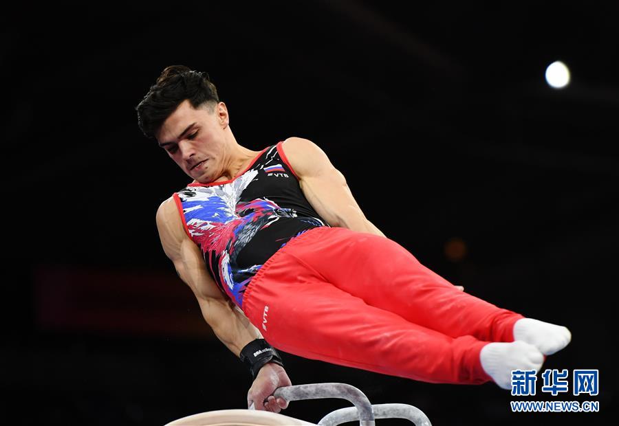 10月11日,俄罗斯选手达拉洛扬在鞍马比赛中。 当日,第49届世界体操锦标赛男子全能决赛在德国斯图加特举行,俄罗斯选手纳戈尔内以88.772分的总成绩夺得冠军,达拉洛扬以87.165分的总成绩获得亚军。 新华社记者 逯阳 摄