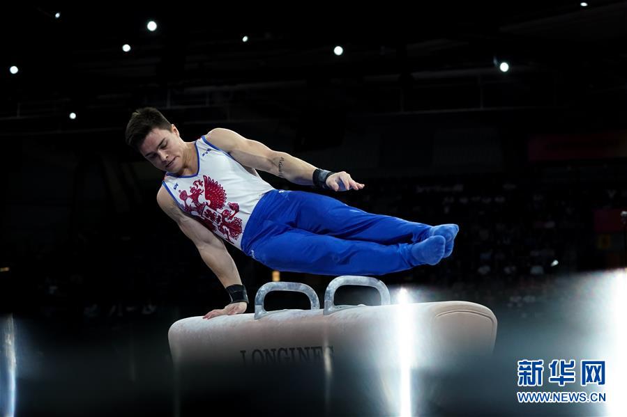 10月11日,俄罗斯选手纳戈尔内在鞍马比赛中。 当日,第49届世界体操锦标赛男子全能决赛在德国斯图加特举行,俄罗斯选手纳戈尔内以88.772分的总成绩夺得冠军,达拉洛扬以87.165分的总成绩获得亚军。 新华社记者 张铖 摄