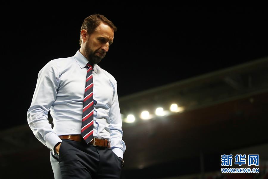 10月11日,英格兰队主教练索斯盖特在比赛中。 当日,在2020欧洲杯预选赛A组第七轮的比赛中,英格兰队客场以1比2不敌捷克队。 新华社/路透