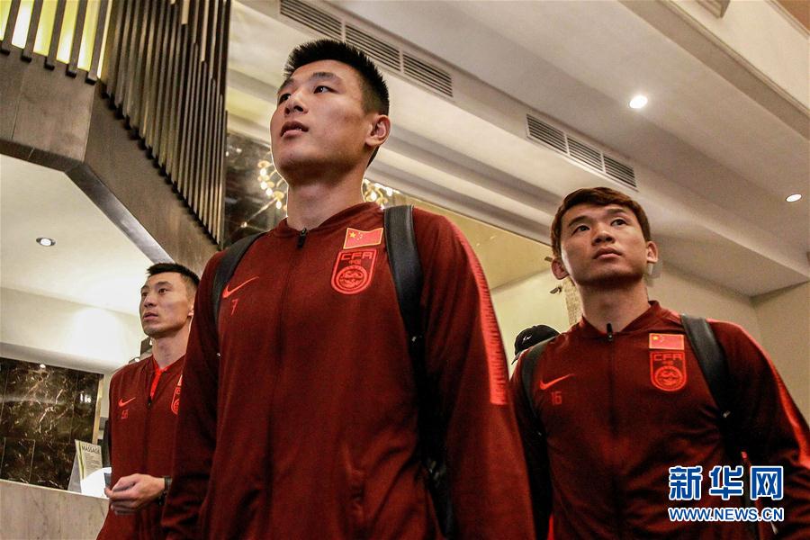 10月13日,中国队球员武磊(中)抵达球队酒店。 当日,中国国家男子足球队抵达菲律宾巴科洛德。国足将于15日在2022年卡塔尔世界杯预选赛亚洲40强赛中客场对阵菲律宾队。 新华社发(乌马利摄)