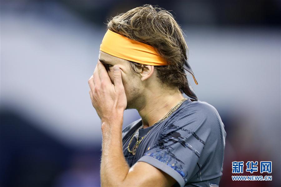10月13日,德国选手兹维列夫在比赛中。 当日,在2019年上海大师赛男子单打决赛中,俄罗斯选手梅德维德夫以2比0战胜德国选手亚历山大·兹维列夫,获得冠军。 新华社记者 丁汀 摄